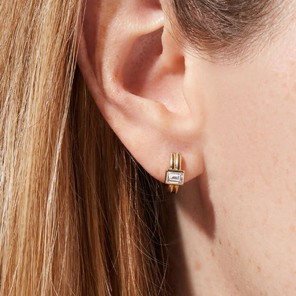 FE1341 925 Sterling Silver Square Cubic Zircon Hoop Earrings