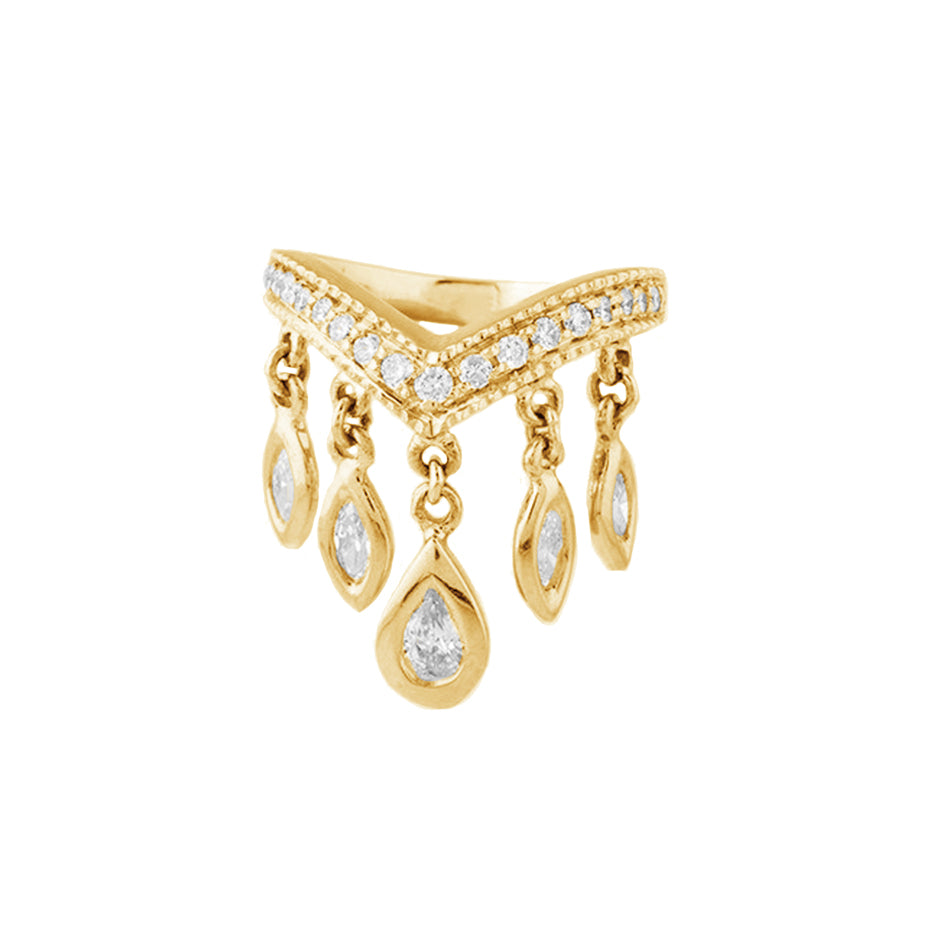 FJ0627 925 Sterling Silver V Band Teardrop CZ Ring