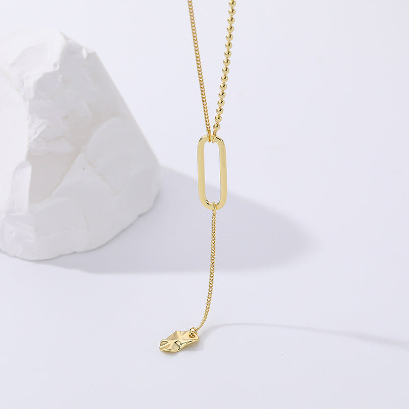 FX1101 925 Sterling Silver Long Tassel Oval Pendant Necklace