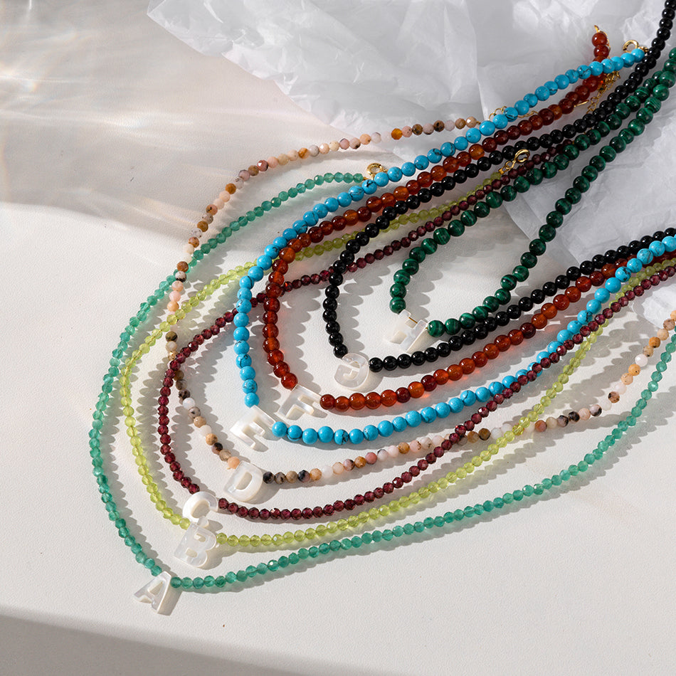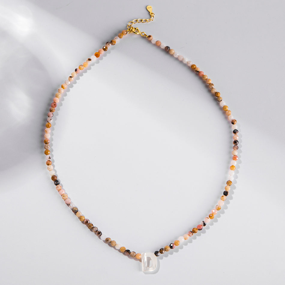 FX0829 925 Sterling Silver Super Seven Bead Letter D Initial Necklace