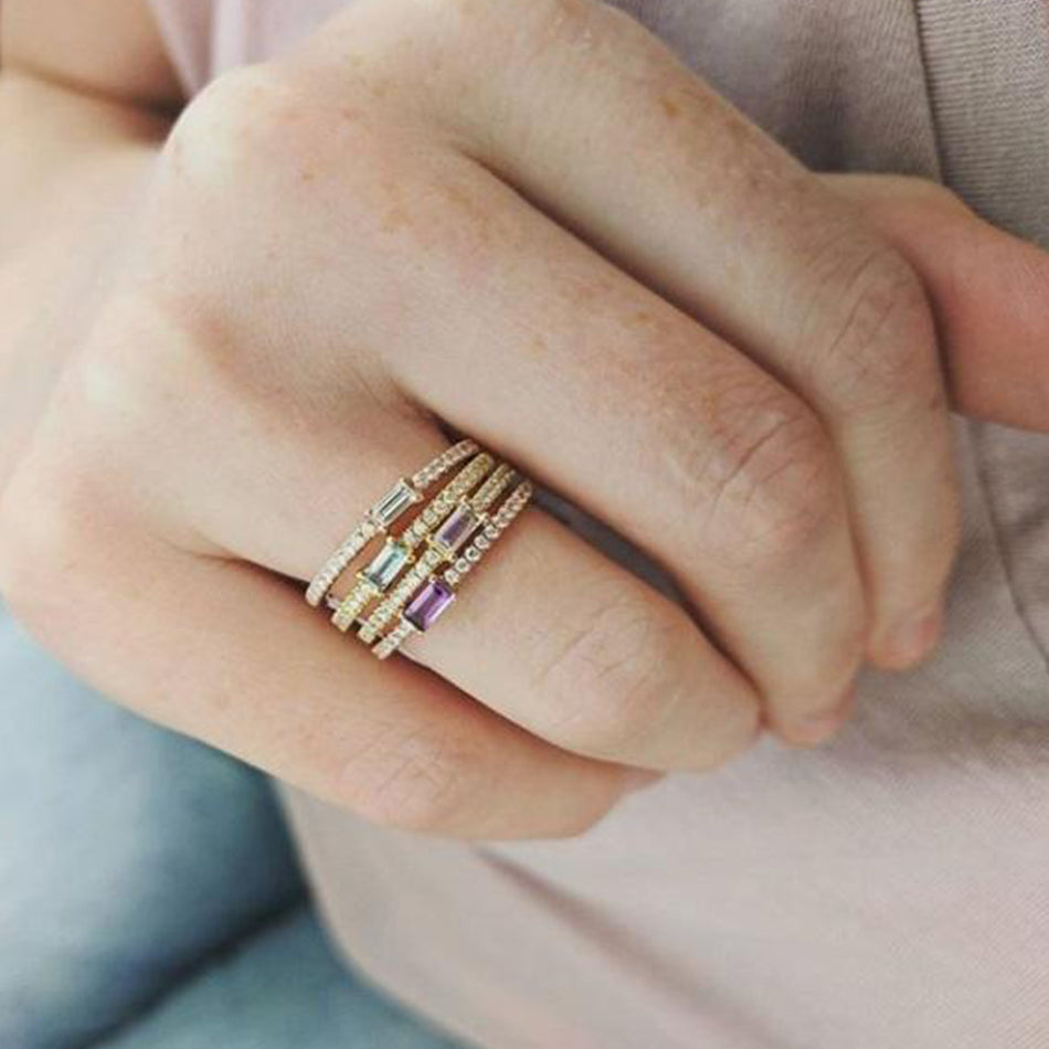FJ0669 925 Sterling Silver Amethyst Pave Zircon Band Ring