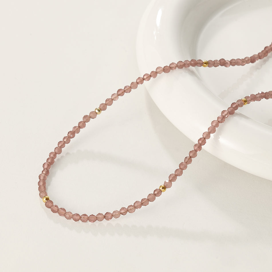 PN0083 925 Sterling Silver Pink Crystal Bead Necklaces