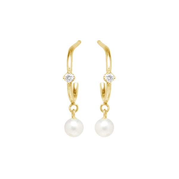 Dainty Pearl & Cubic Zirconia Drop Hoop Earring