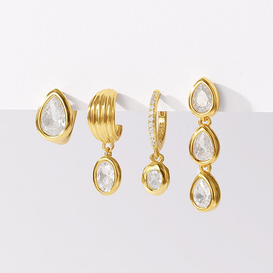 VFE0682 Triple Pear CZ Drop Stud Earrings