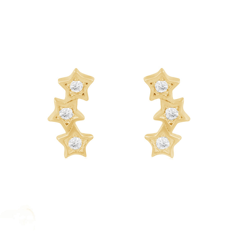 FE1564 925 Sterling Silver Trio Star Zircon Stud Earrings