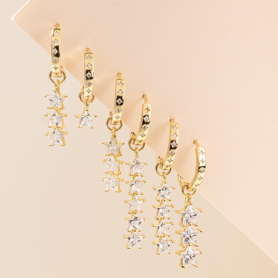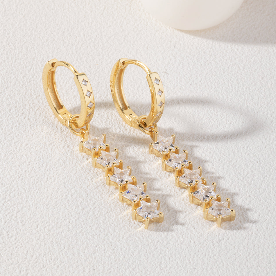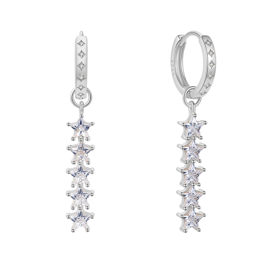 FE1862 925 Sterling Silver Quintet White CZ Dangle Hoops