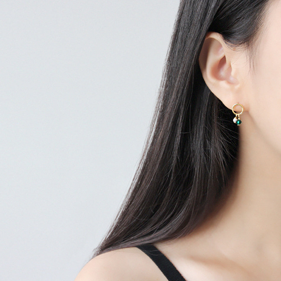 RHE1029 Pearl Emerald Crystal Beads Stud