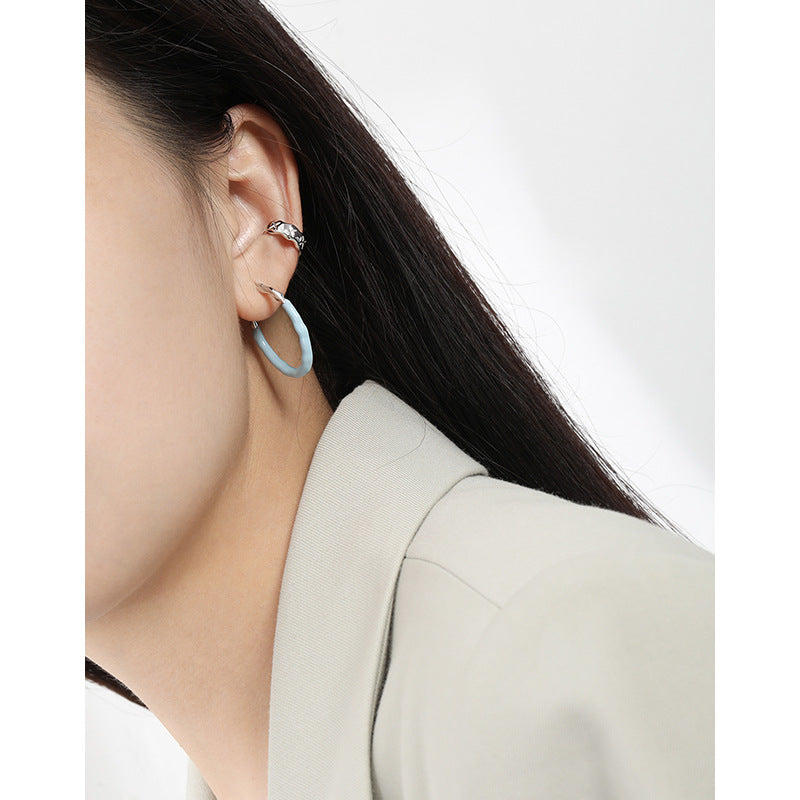 RHE1301 925 Sterling Silver Irregular Enamel Hoop Earrings