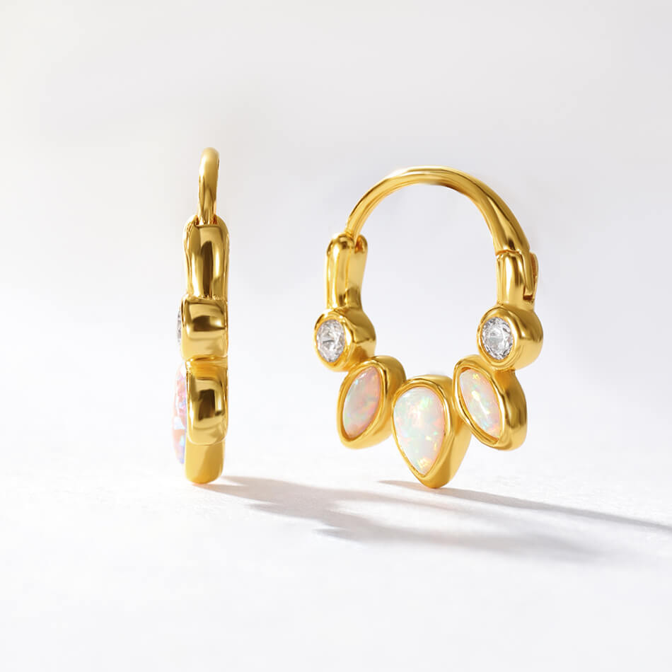 Bezel Setting Marquise Opal Hoops Earrings |