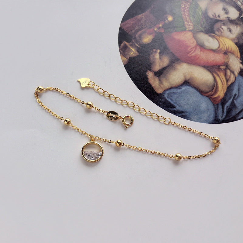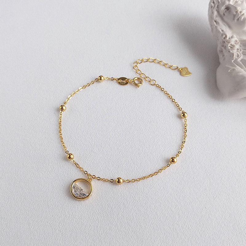 FS0355 925 Sterling Silver Round Bead One Wangqing Spring Water Drop Pendant Bracelet