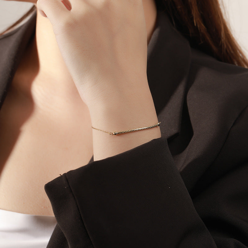 FS0373 925 Sterling Silver Cross Stitch Snakeskin Chain Bracelet