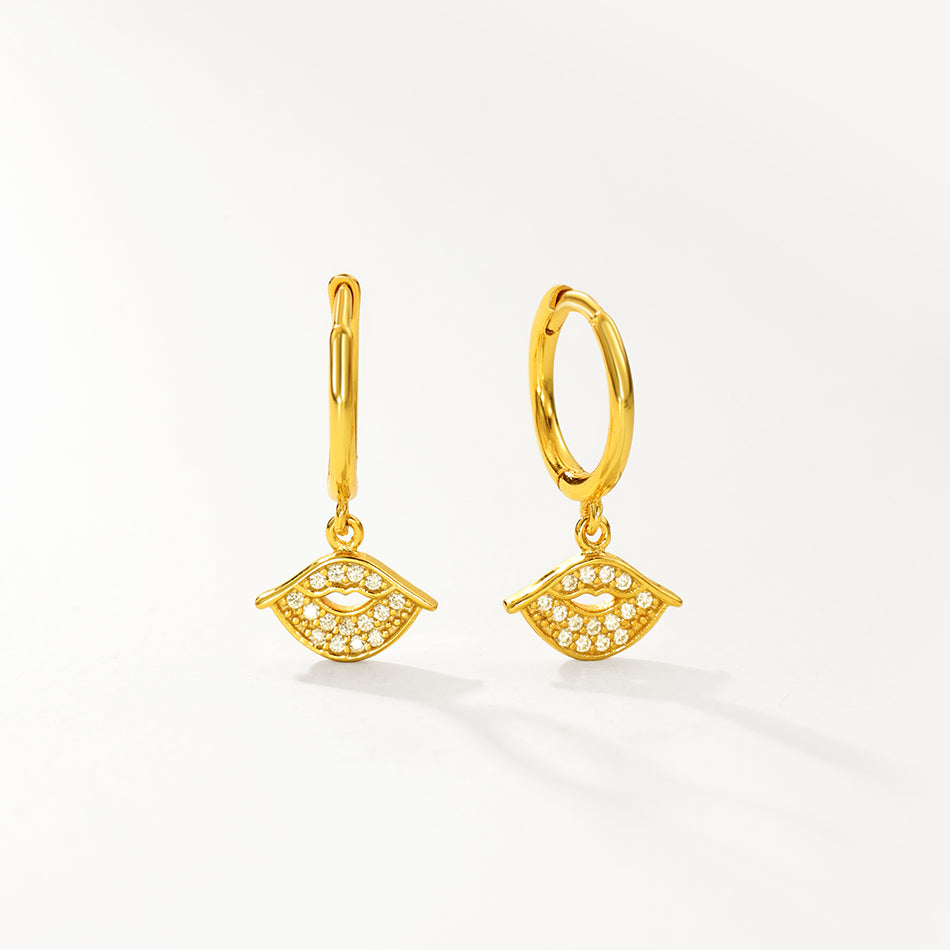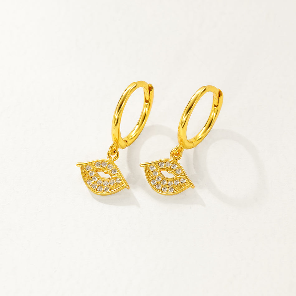 FE2862 925 Sterling Silver Zircon Lip Print Dangle Earrings
