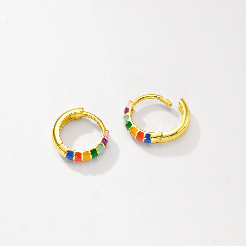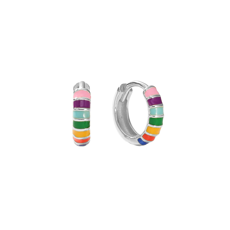 FE2961 925 Sterling Silver Enamel Contrast Design Hoop Earrings