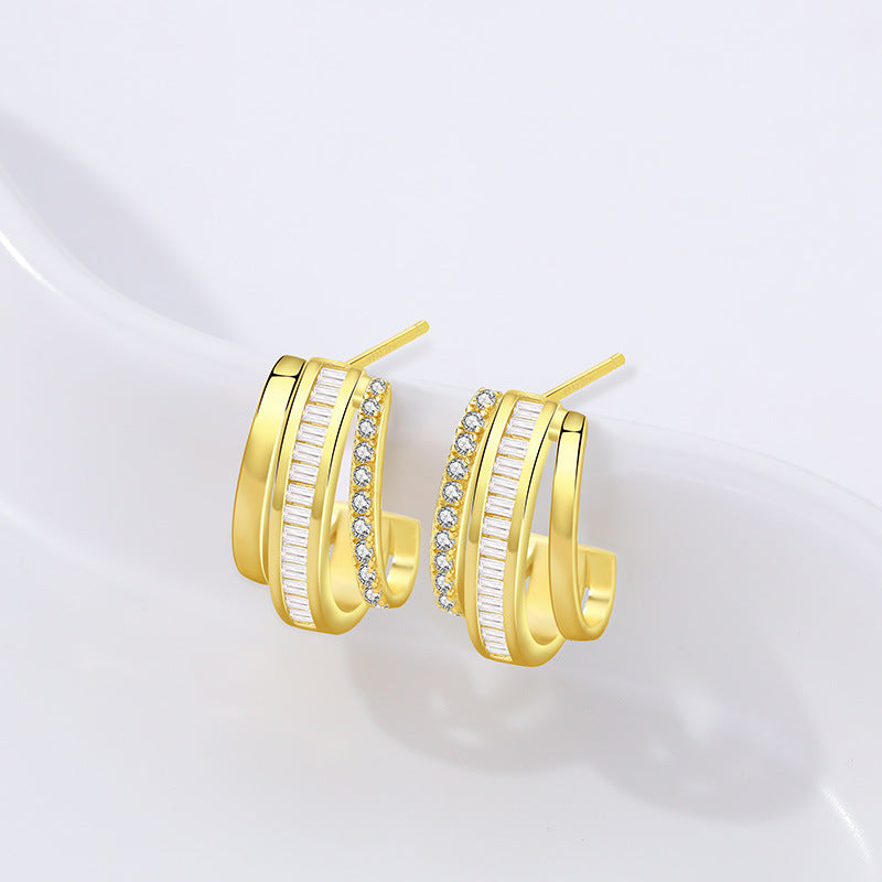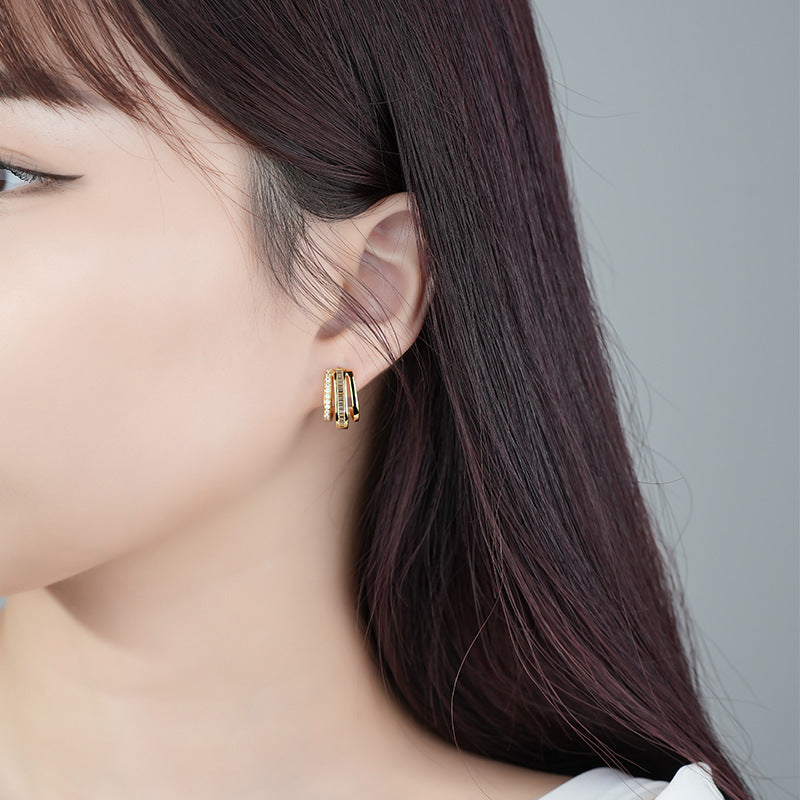 FE3021 925 Sterling Silver Triple Band Hoop Earring