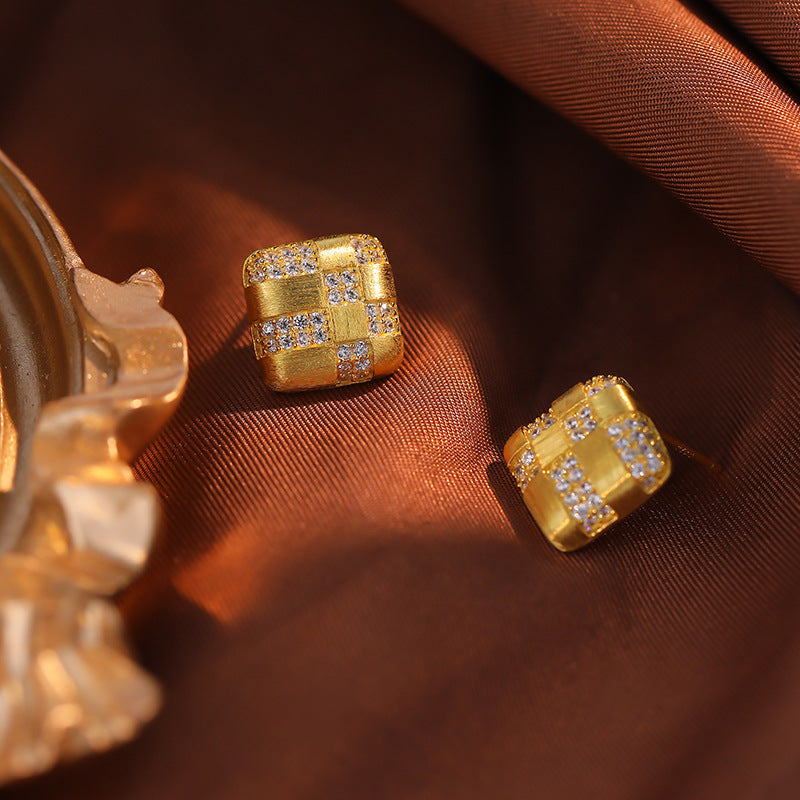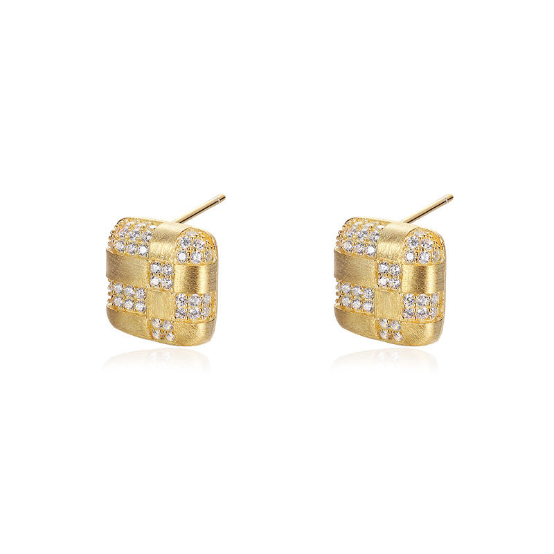 FE3035 925 Sterling Silver Geometric Square Frosted Stud Earrings