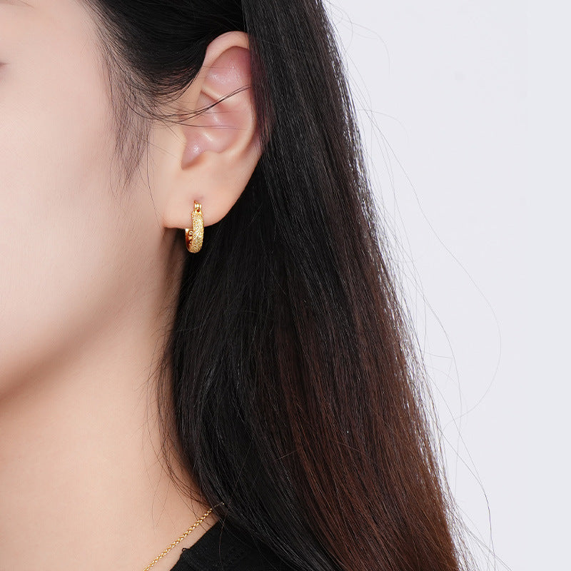 FE3046 925 Sterling Silver Frosted Earrings Heart Shape Hoops