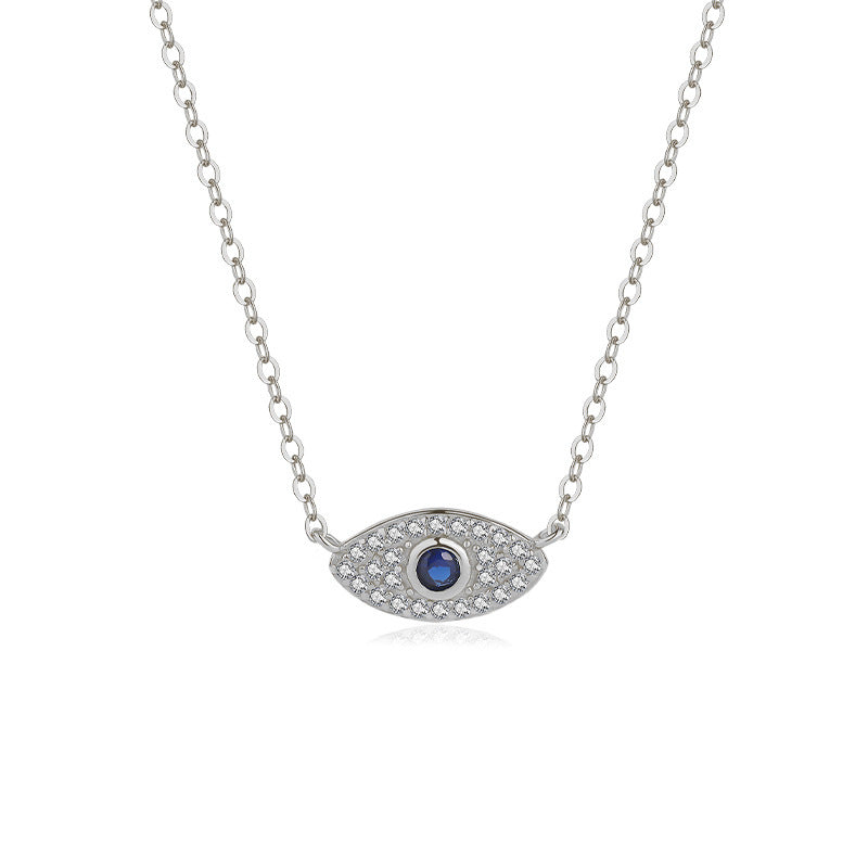 FX0997 925 Sterling Silver Blue Zirconia Evil Eye Pendant Necklaces
