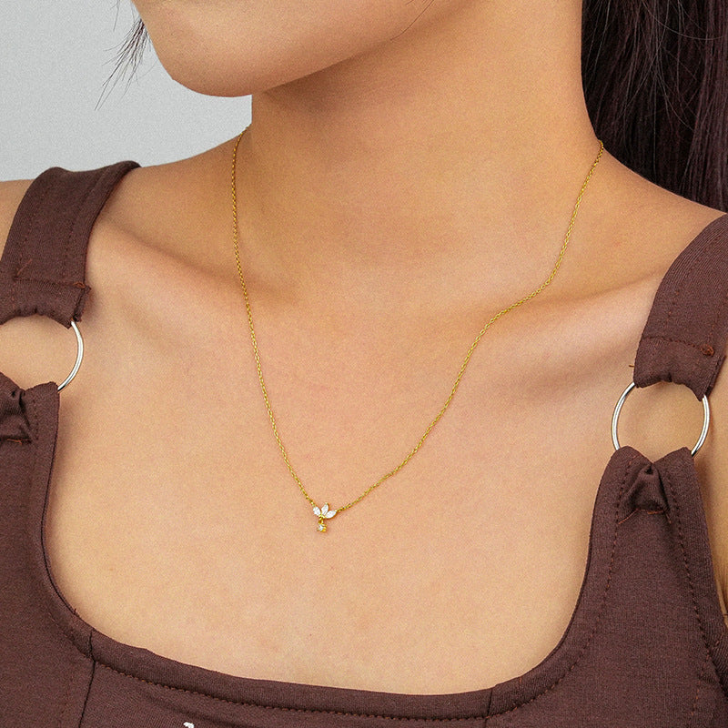 FX1001 925 Sterling Silver Zirconia Marquise Flower Pendant Necklaces