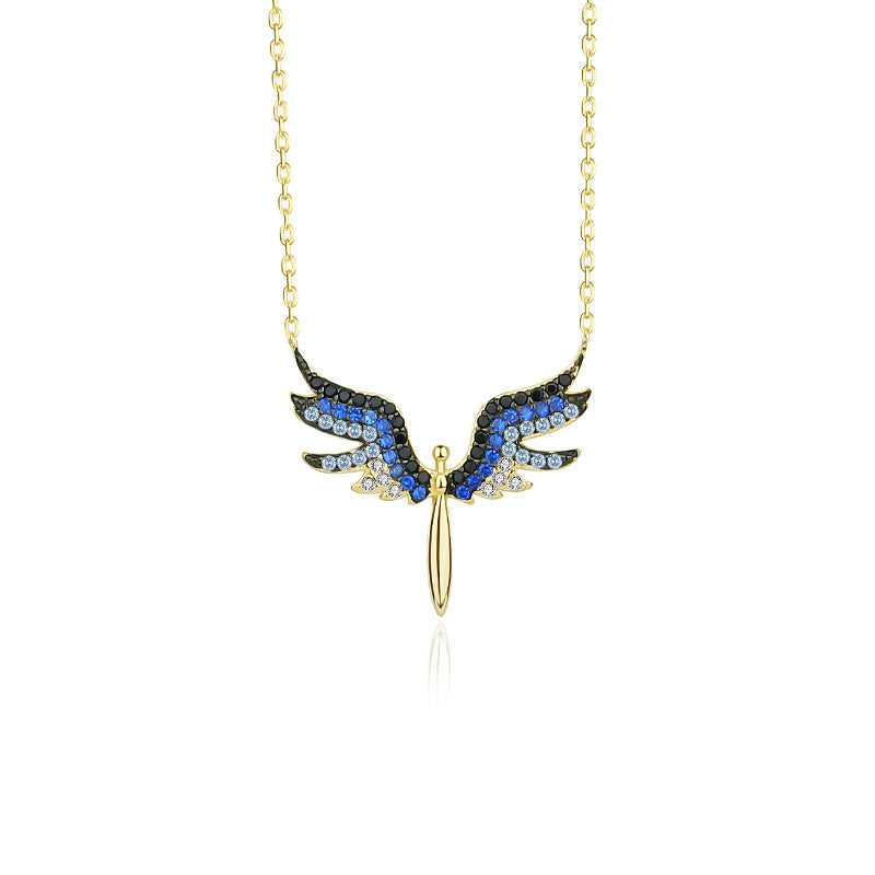 FX1008 925 Sterling Silver Zirconia Angel Wings Necklaces