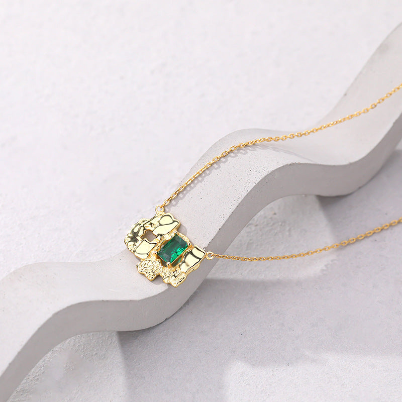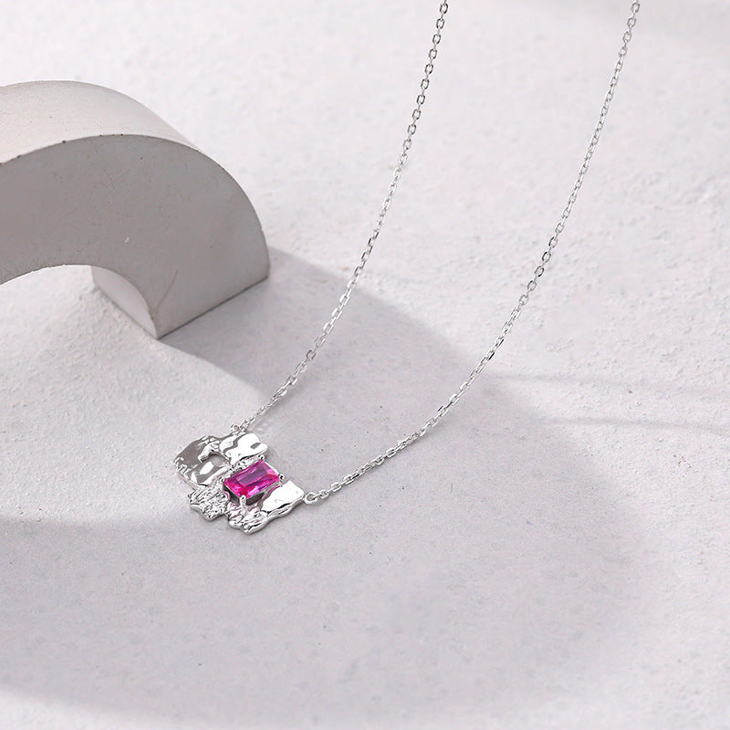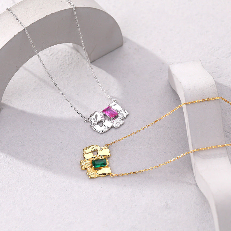FX1016 925 Sterling Silver Irregular Textured Baguette CZ Pendant Necklace