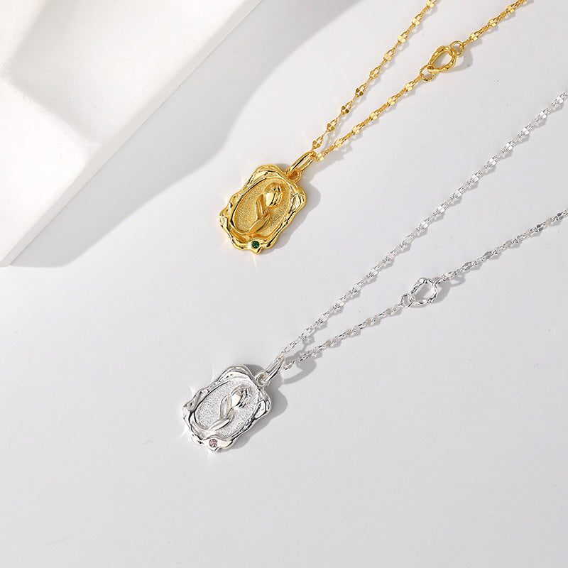 FX1026 925 Sterling Silver Antique Tulip Irregular Square Necklace