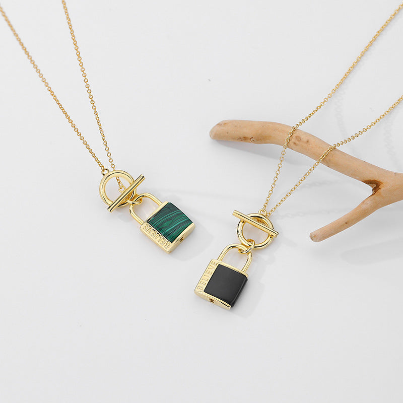 FX1035 Malachite Lock Toggle Pendant Necklaces