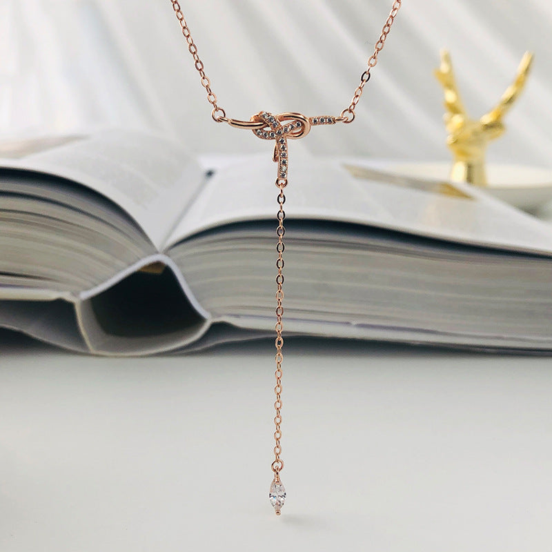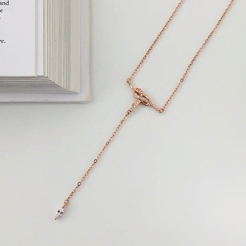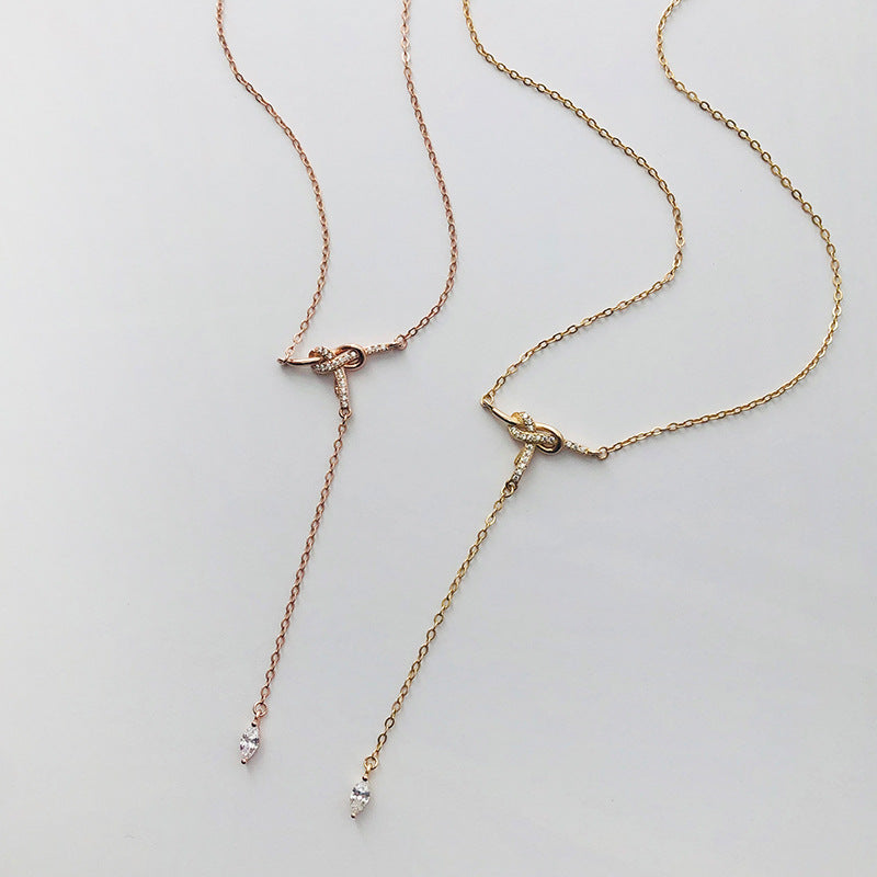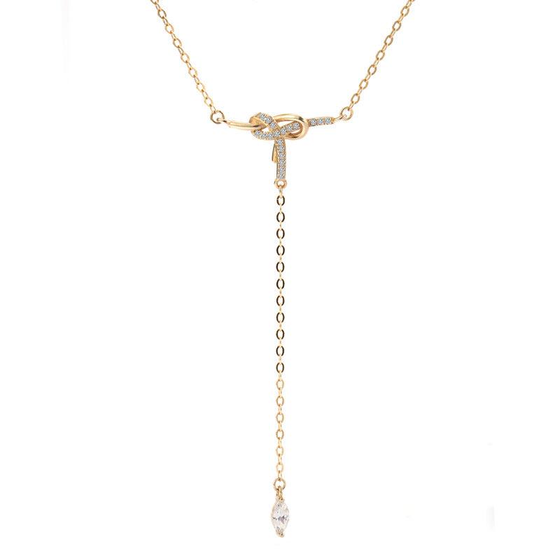 FX1047 925 Sterling Silver Cubic Zirconia Simple Tassel Bow Necklace
