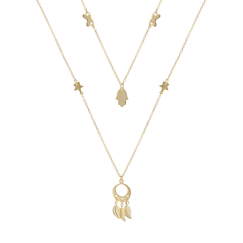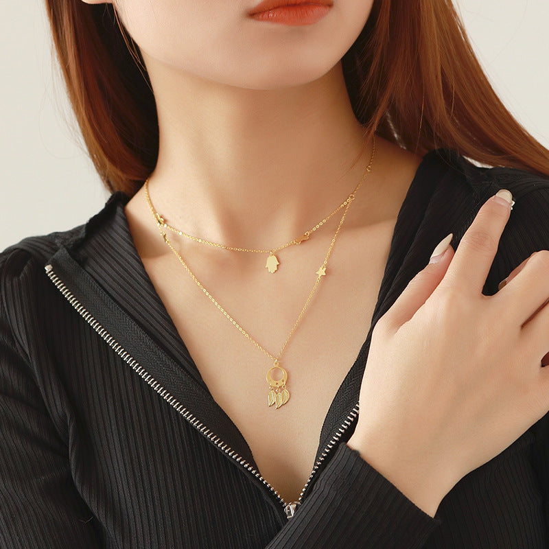 Dream Catcher Hamsa Hand Double Layer Necklace |