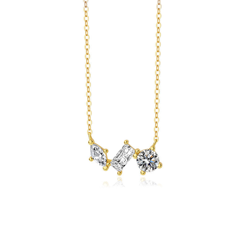 FX1063 925 Sterling Silver Geometry Baguette Marquise Necklaces