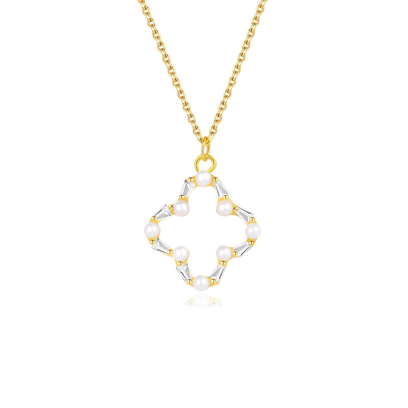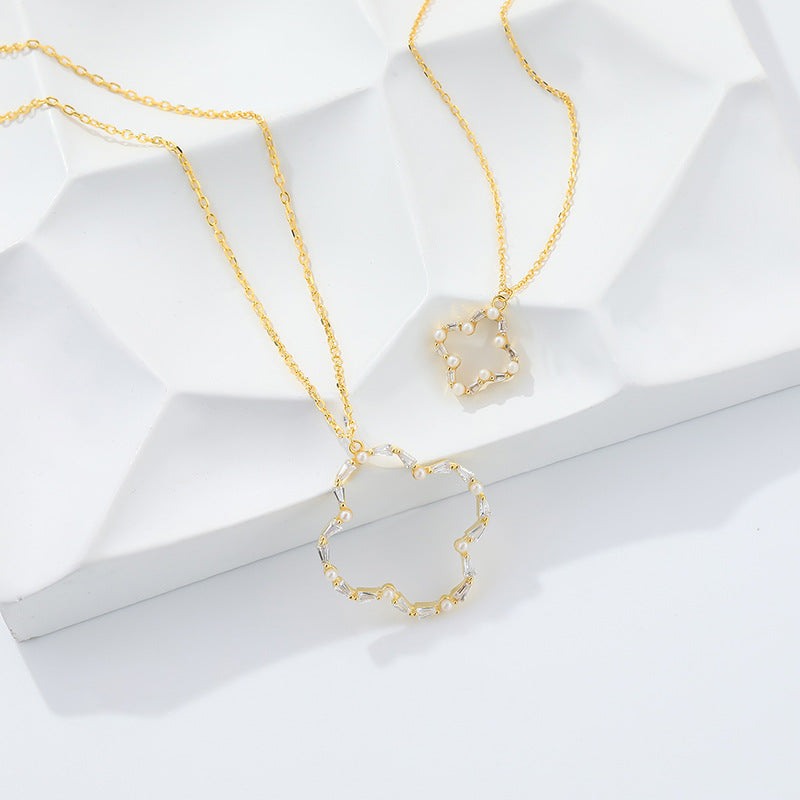 FX1080 925 Sterling Silver Zircon Openwork Clover Necklace