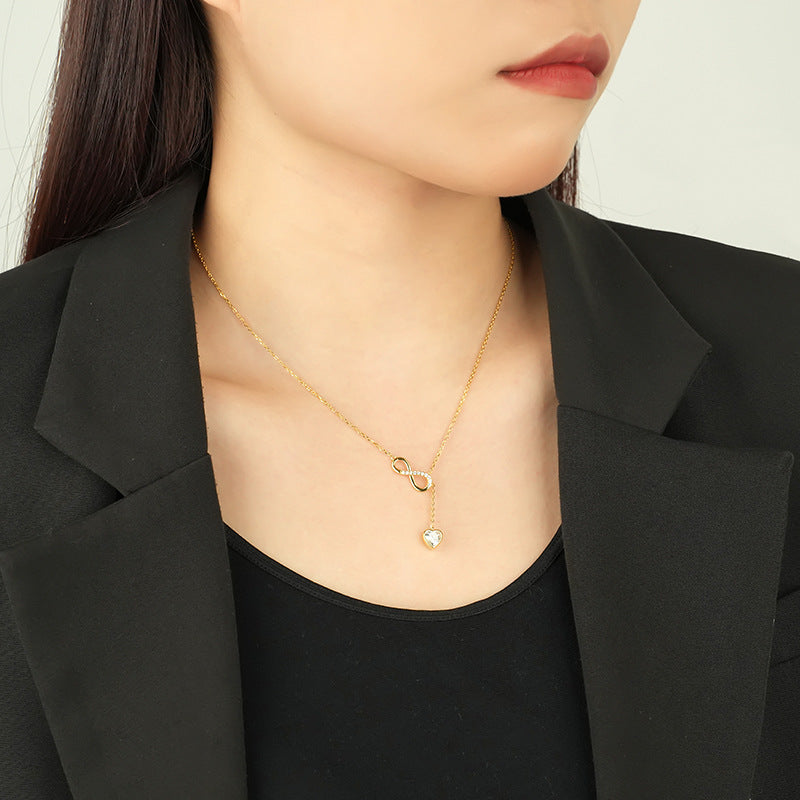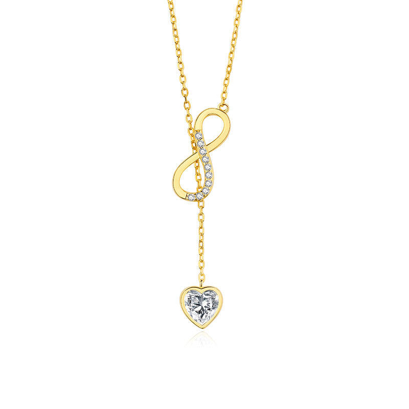 FX1090 925 Sterling Silver Cubic Zirconia Heart infinity Tessel Necklace