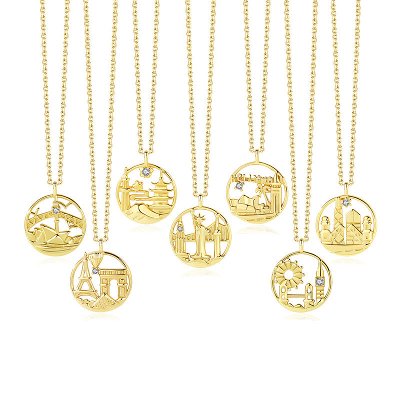 FX1094 - FX1100 925 Sterling Silver Famous City Building Logo Pendant Necklace