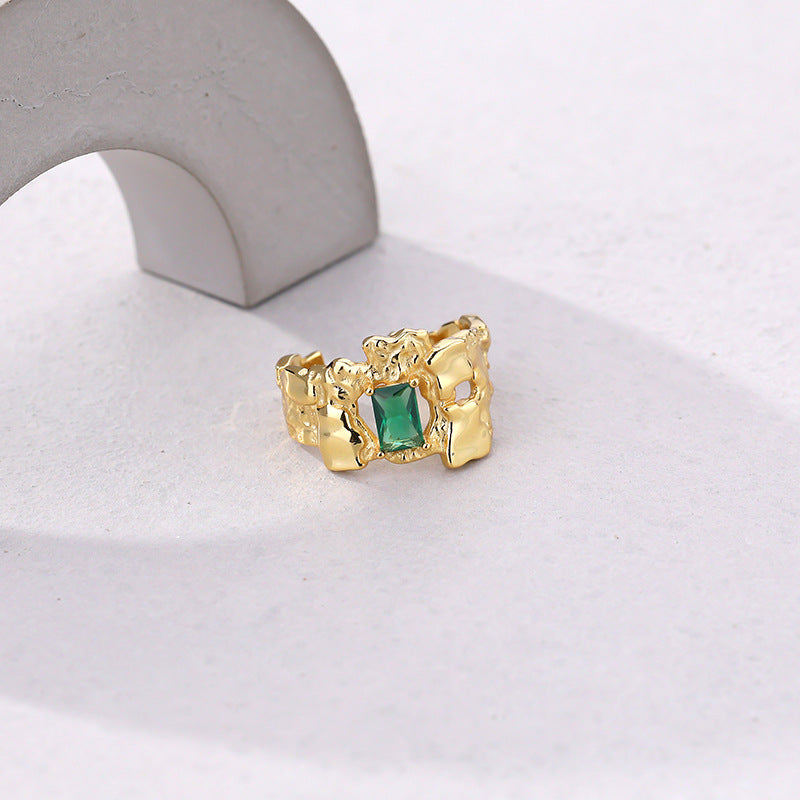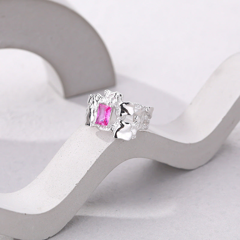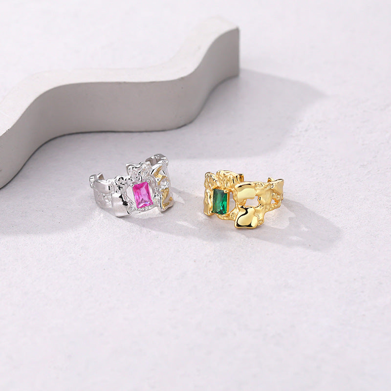 FJ0942 925 Sterling Silver Zirconia Lava Ring