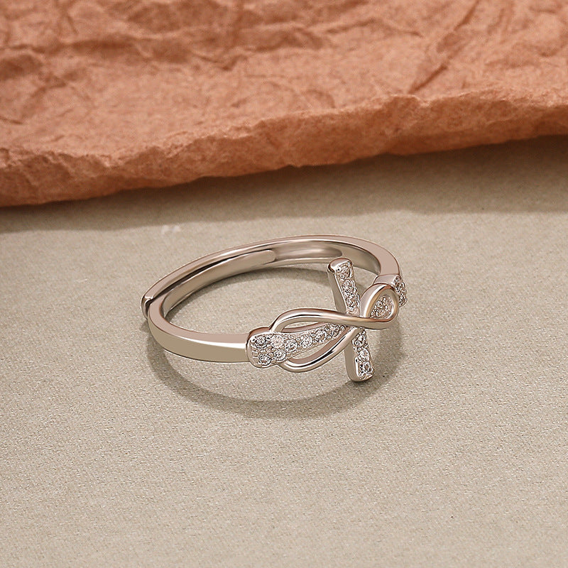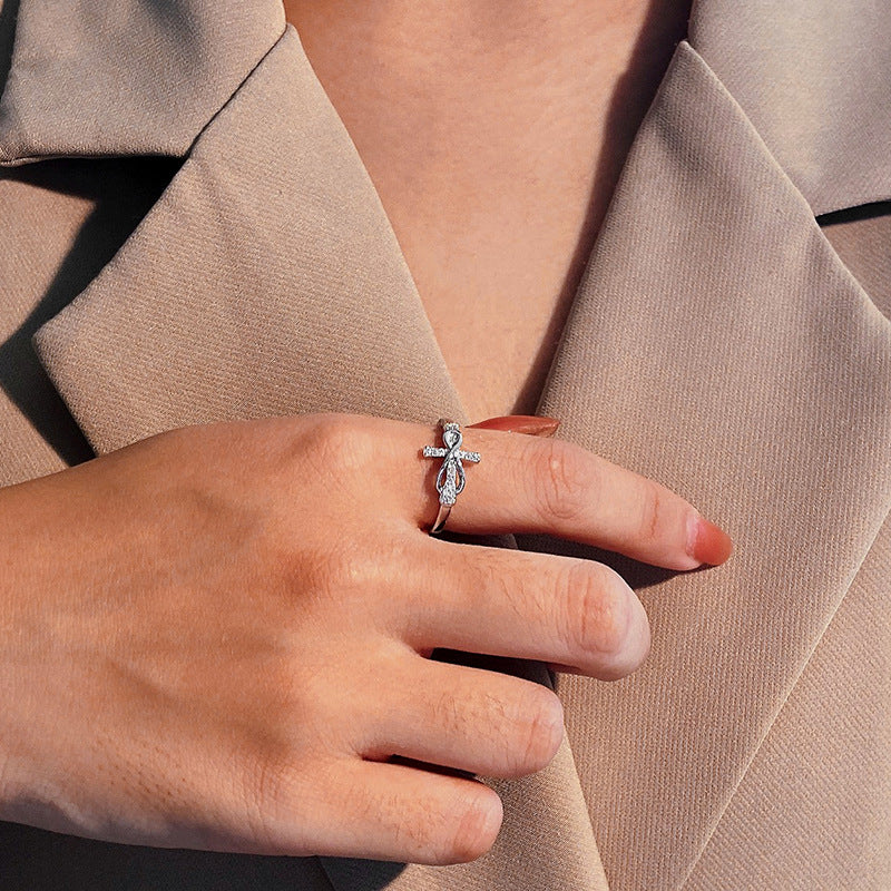 FJ0991 925 Sterling Silver Zircon Cross Mobius Ring
