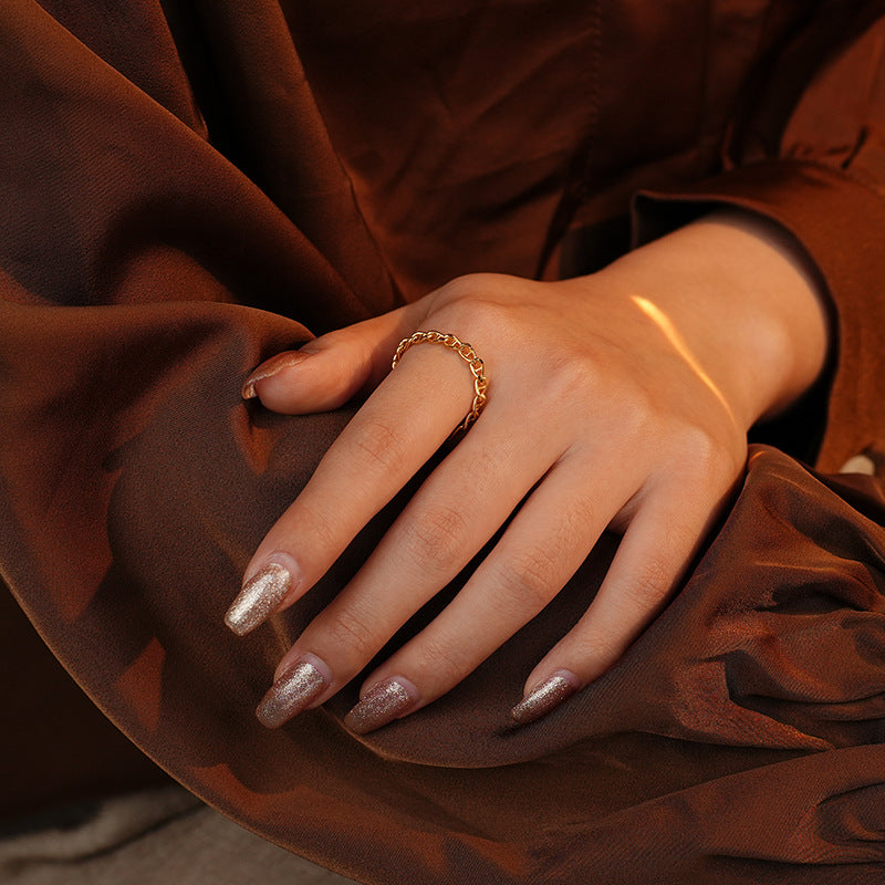 FJ1080 925 Sterling Silver Gold Bead Adjustable Chain Ring