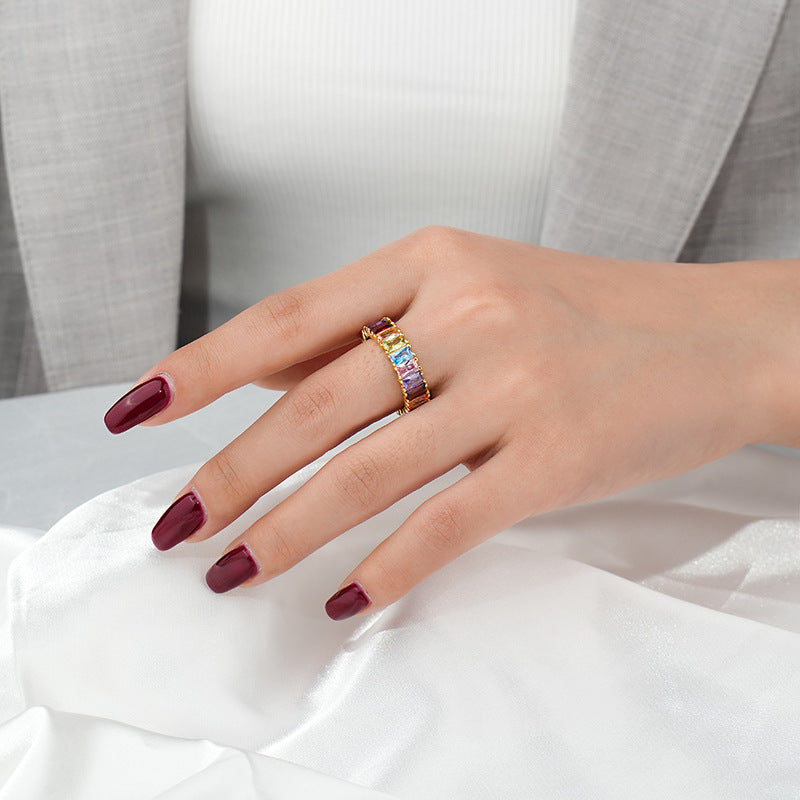 Colorful Baguette CZ Ring |