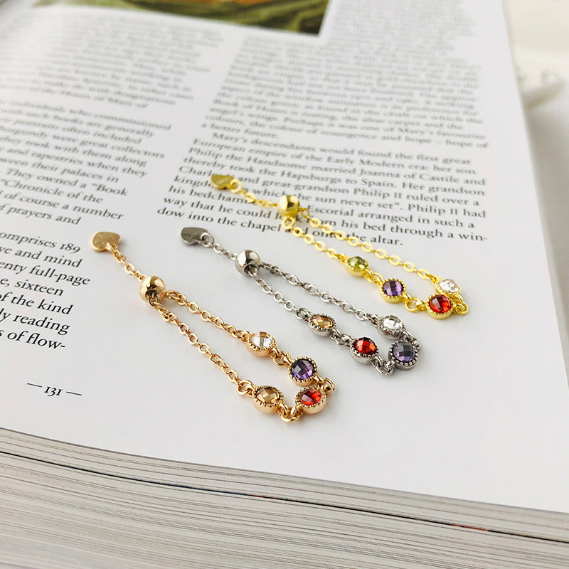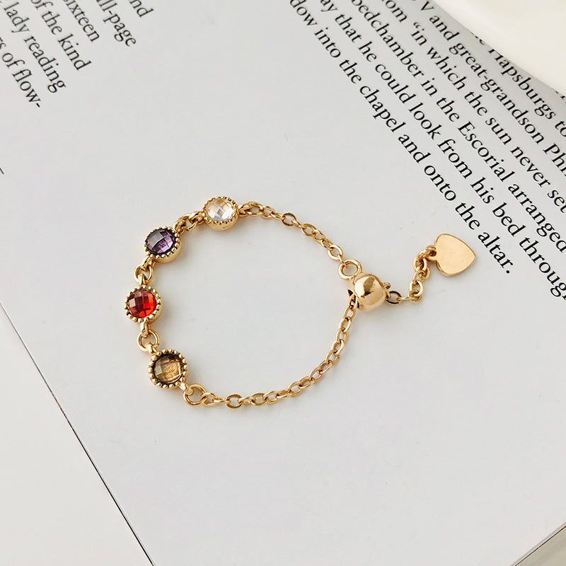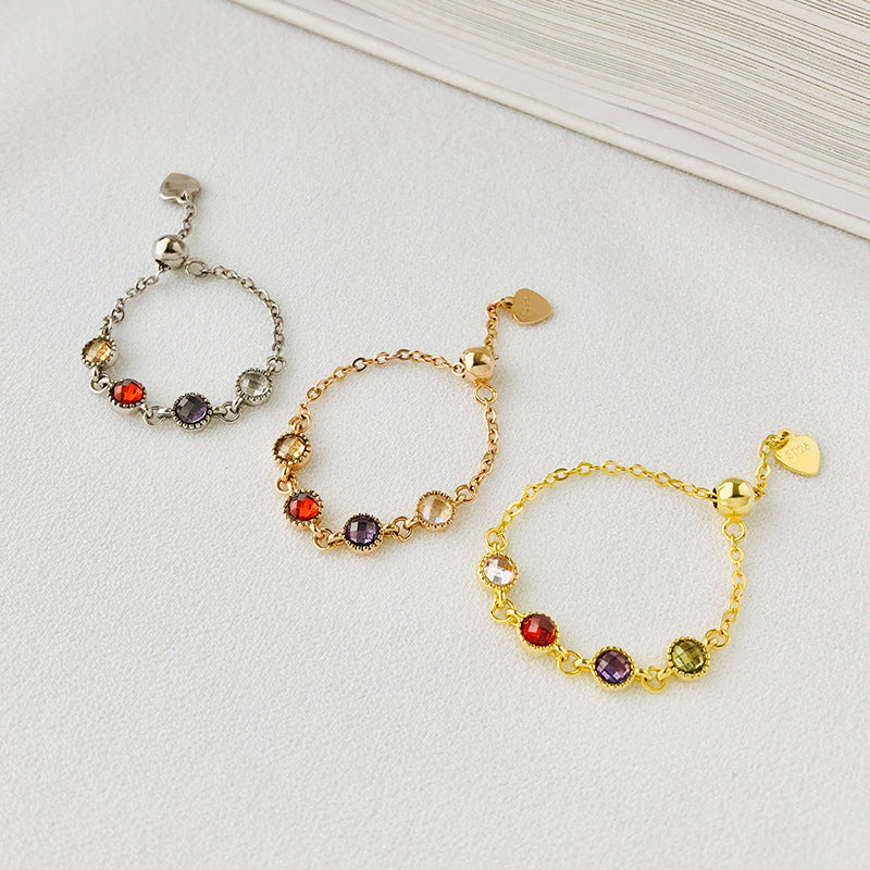 K319K 925 Sterling Silver Rainbow Crystal Chain Ring