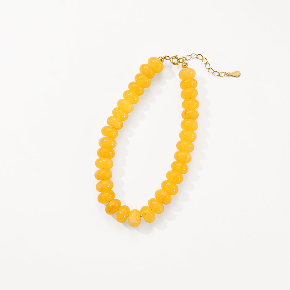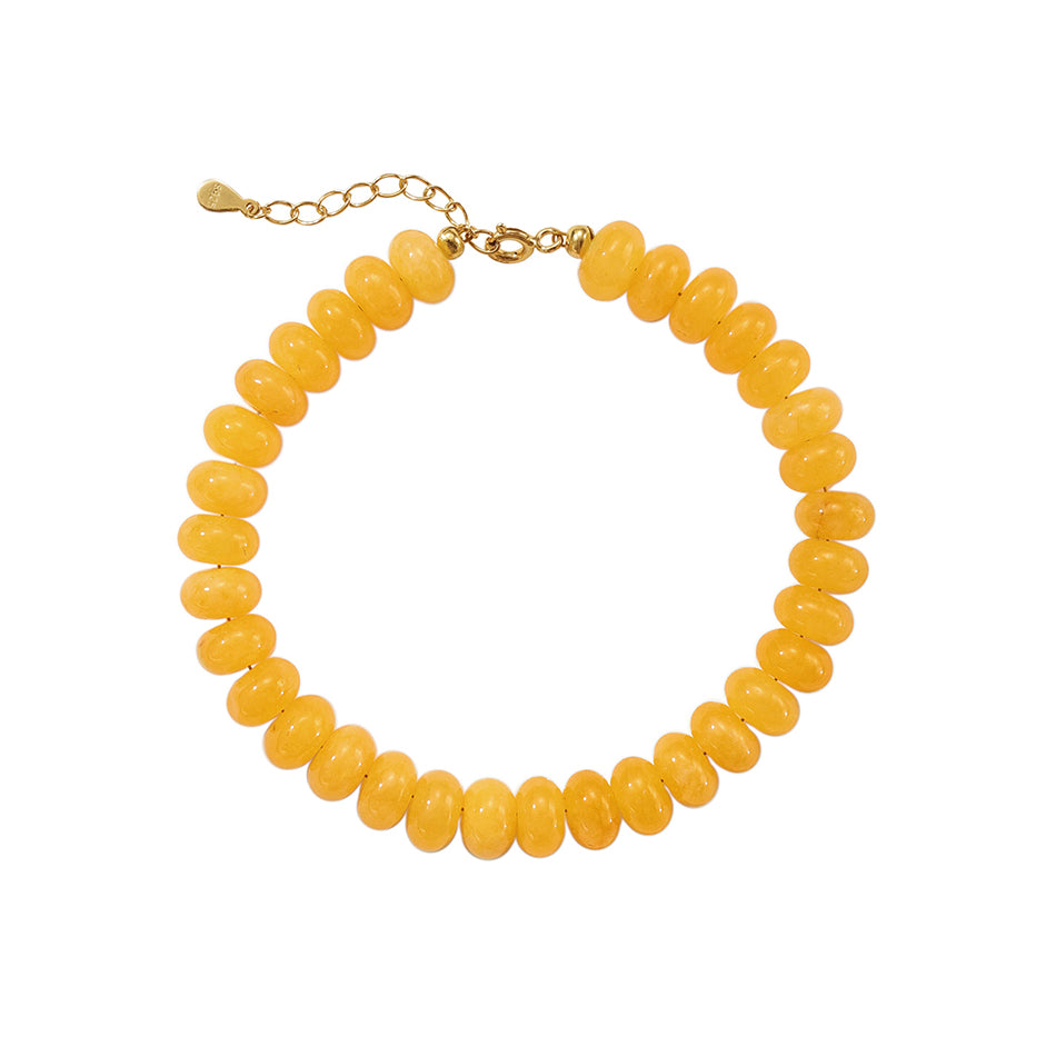 PB0148 925 Sterling Silver Yellow Jade Charm Beads Bracelet