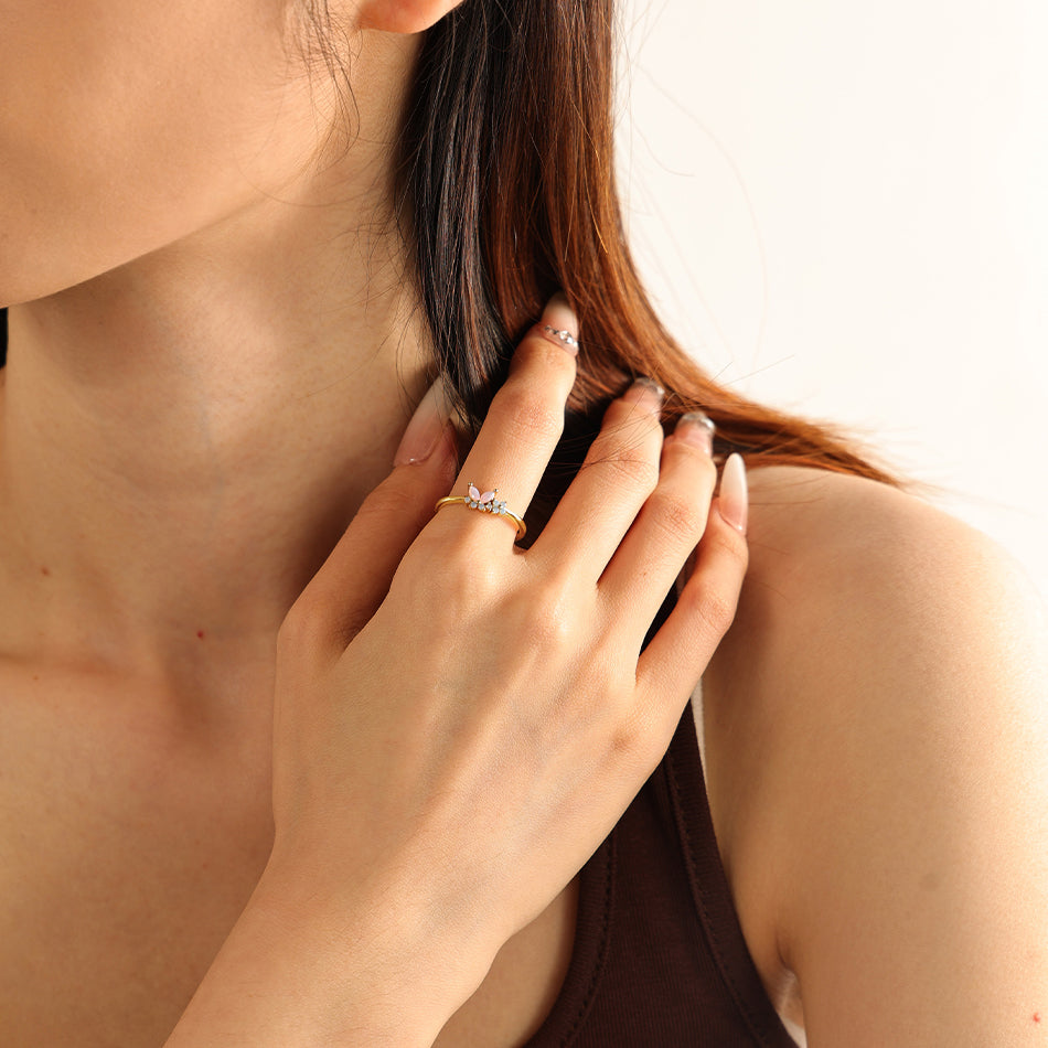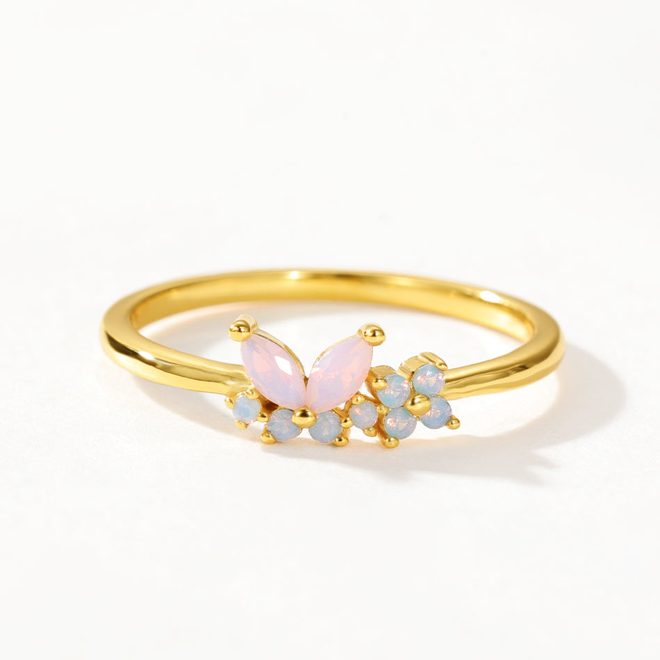 VFJ0147 Milky Opal Pink Nano Butterfly Flower Ring