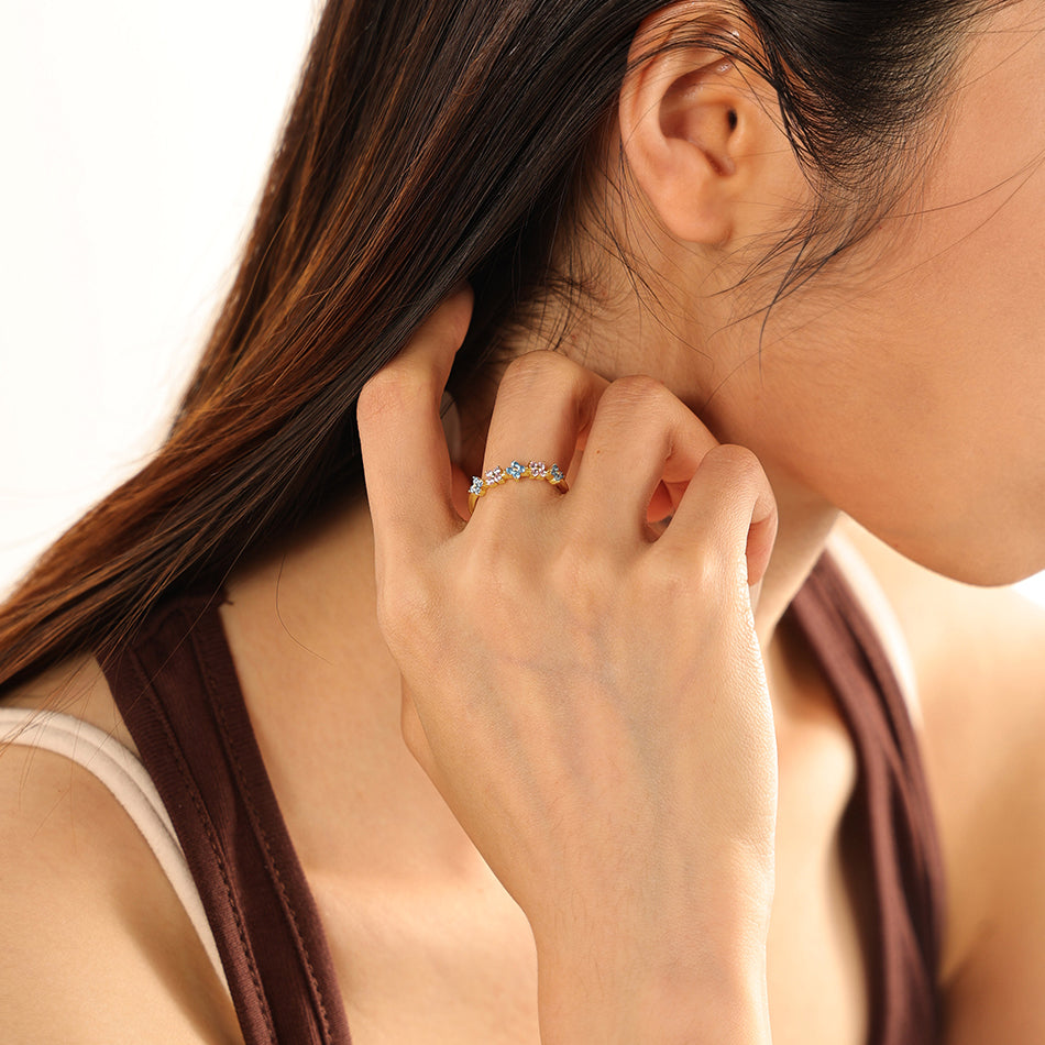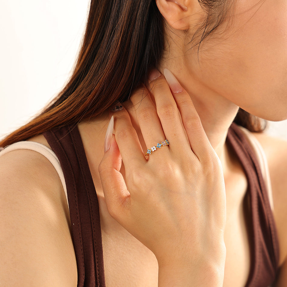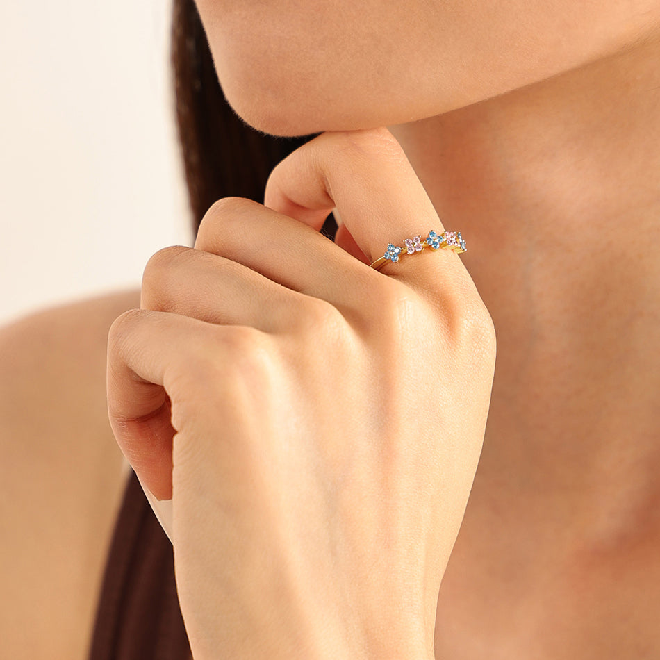 VFJ0148 Quartet Pink Blue Flower Cubic Zirconia Women Ring