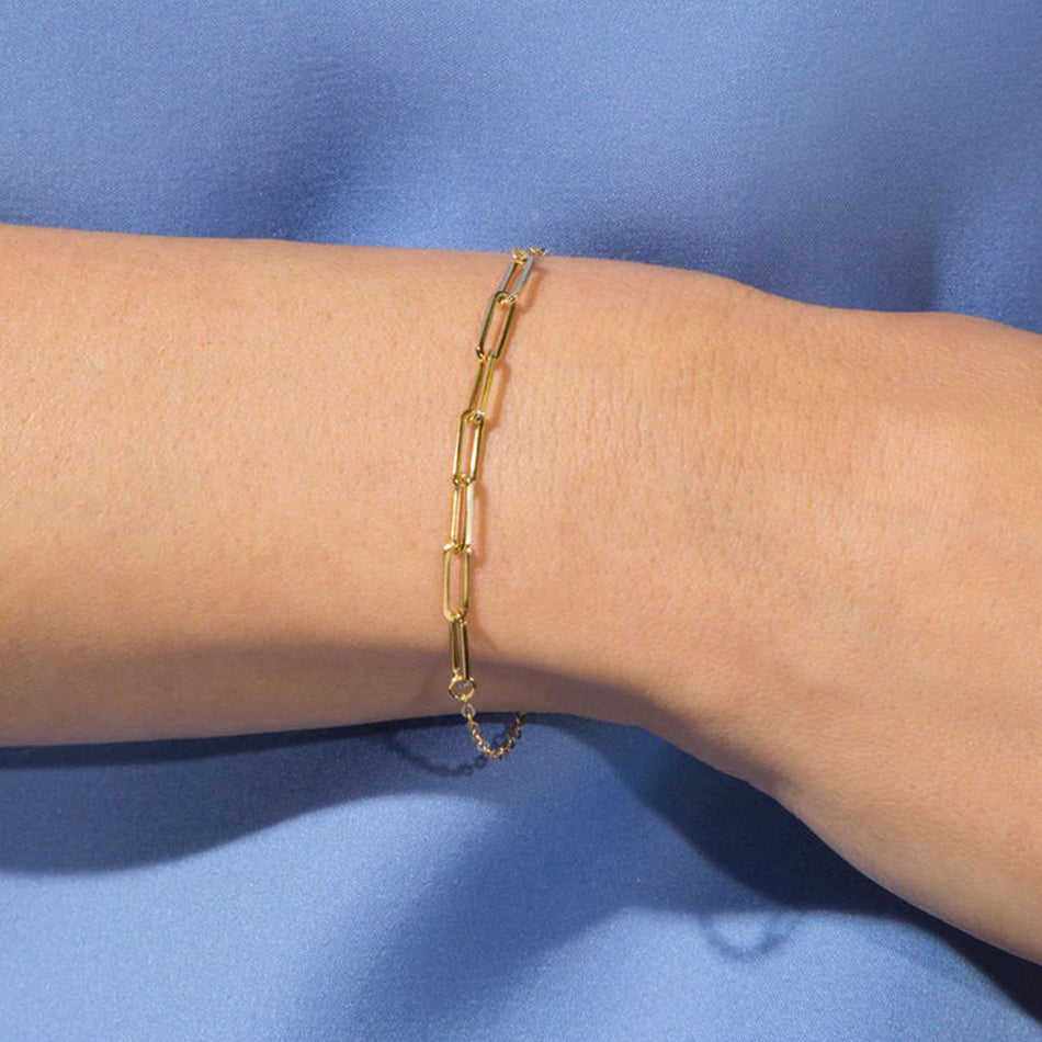 FS0296 925 Sterling Silver Paperclip Gold Chain Bracelet