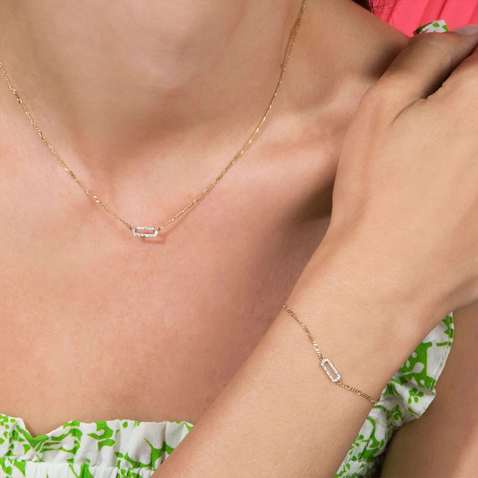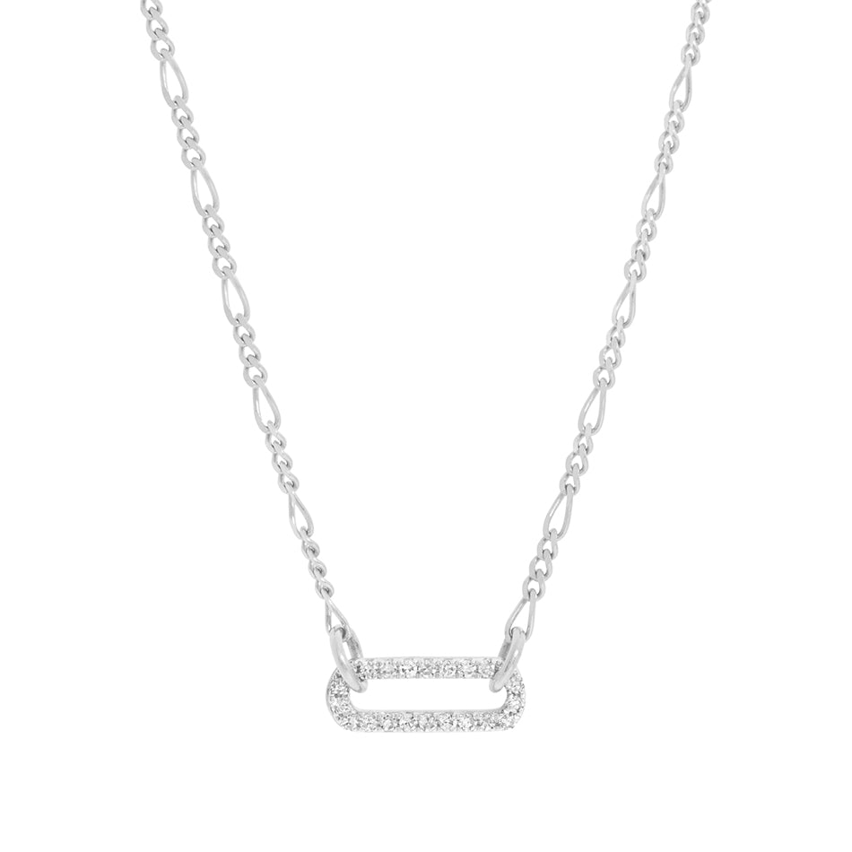 Pave Cubic Zirconia Paperclip Figaro Necklace |