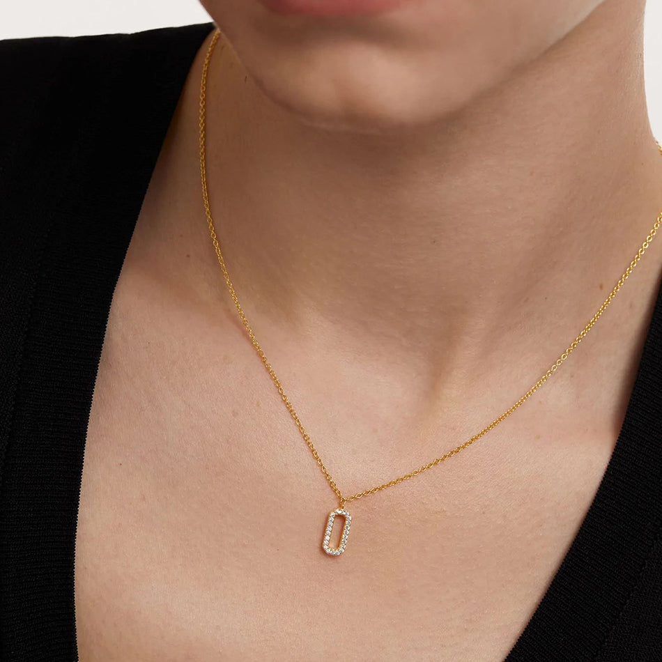 FX0877 925 Sterling Silver Rectangular Pave Cubic Zirconia Necklace