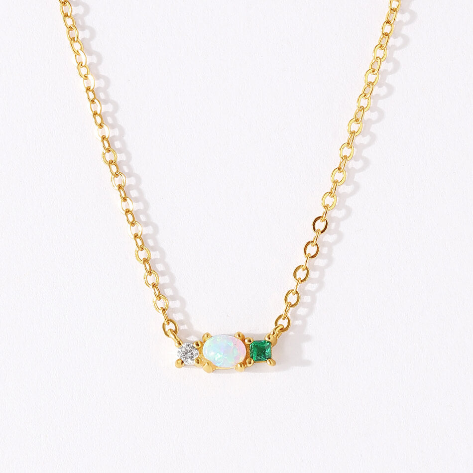 VFX0458 Oval Opal Geometric CZ Pendant Necklace