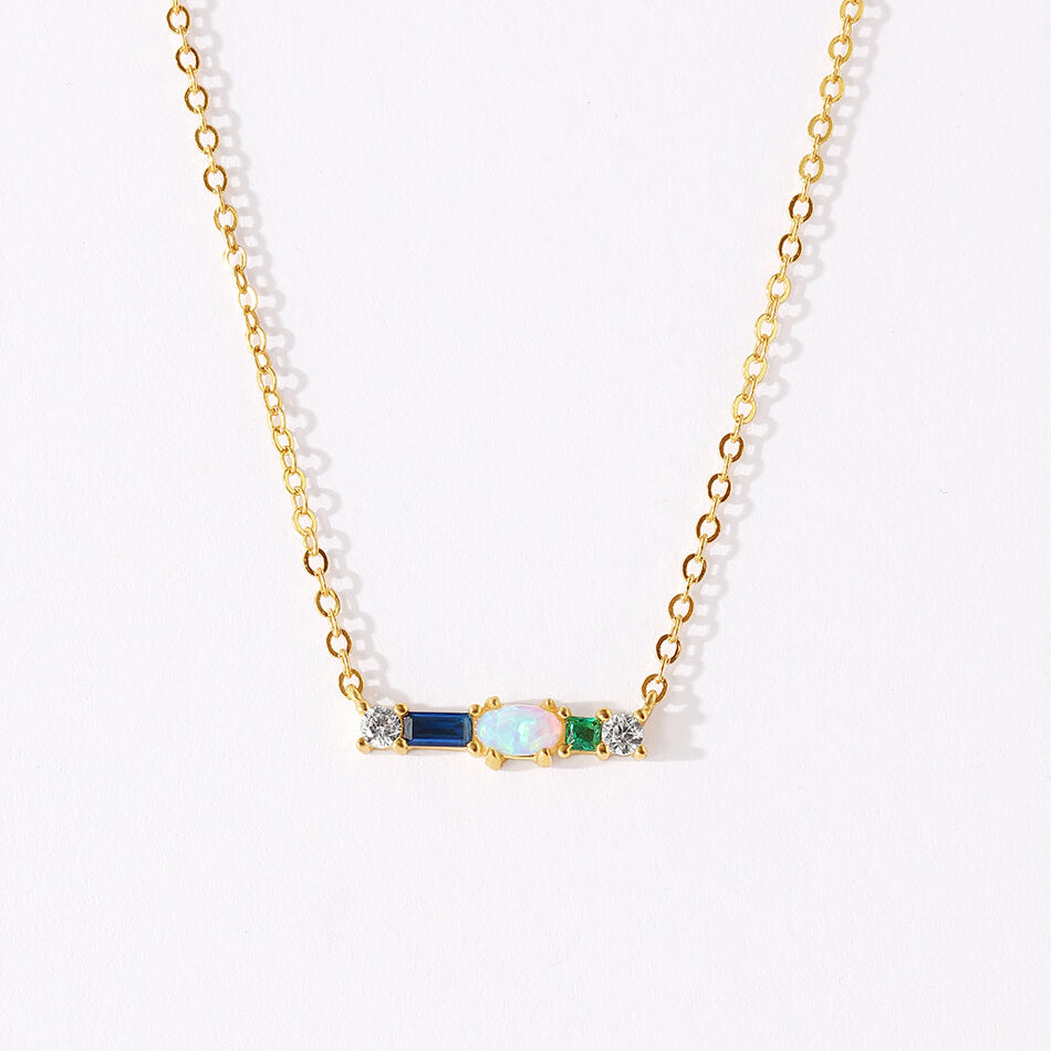 VFX0462 Oval Opal Geometric CZ Pendant Necklace