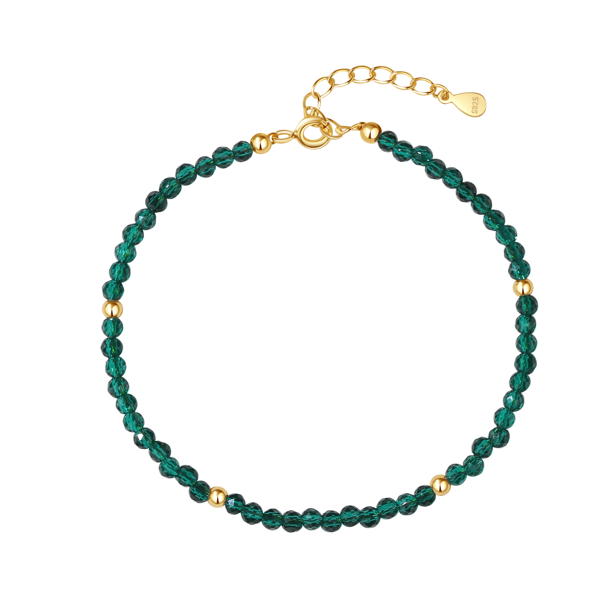 PB0054 925 Sterling Silver Green Crystal Beaded Bracelet