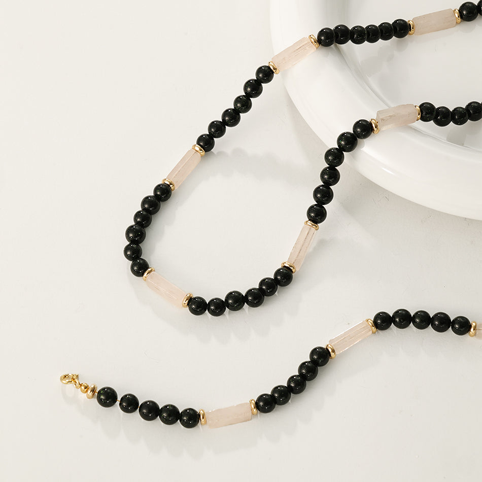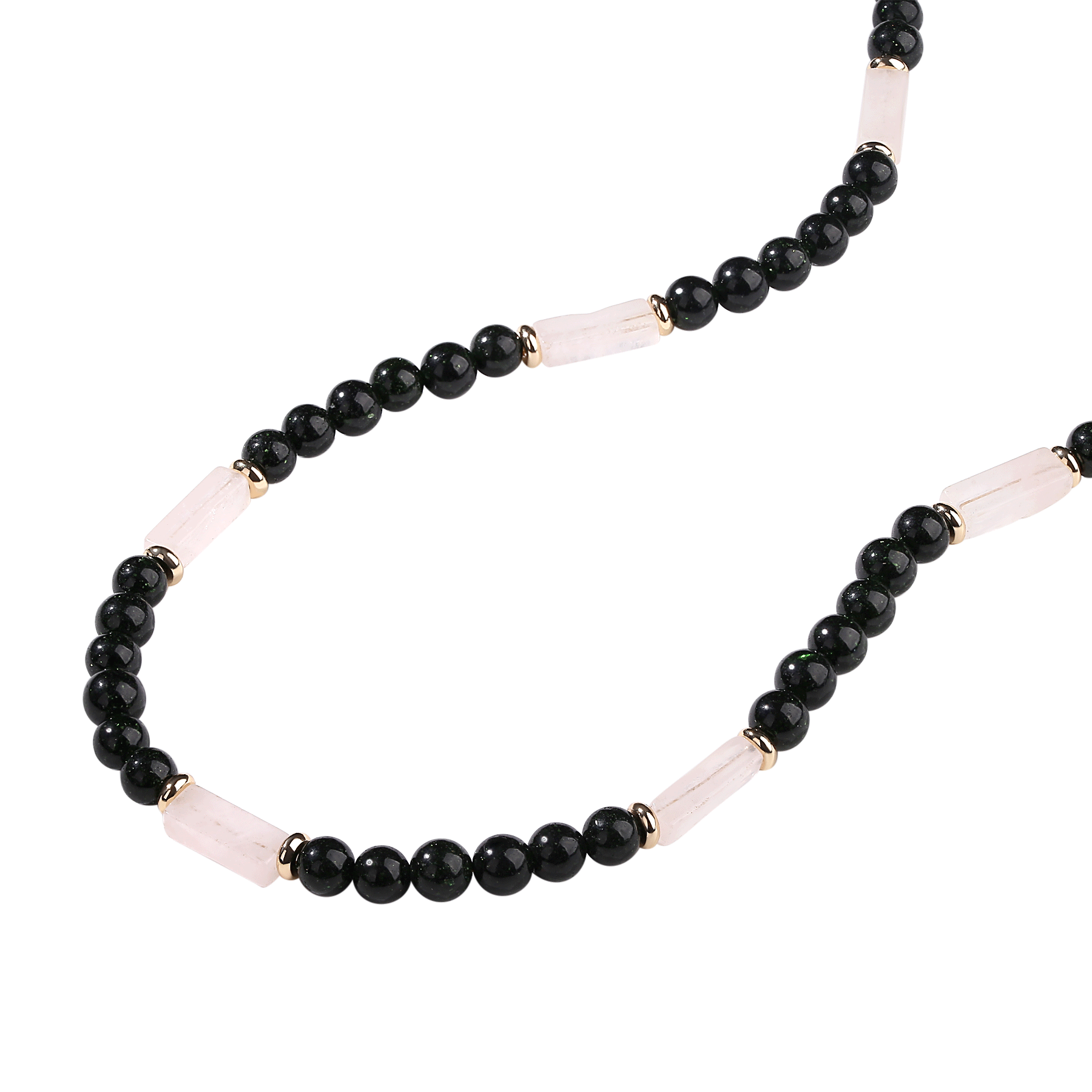PN0098 925 Sterling Silver Green Sand Stone Pink Crystal Necklace