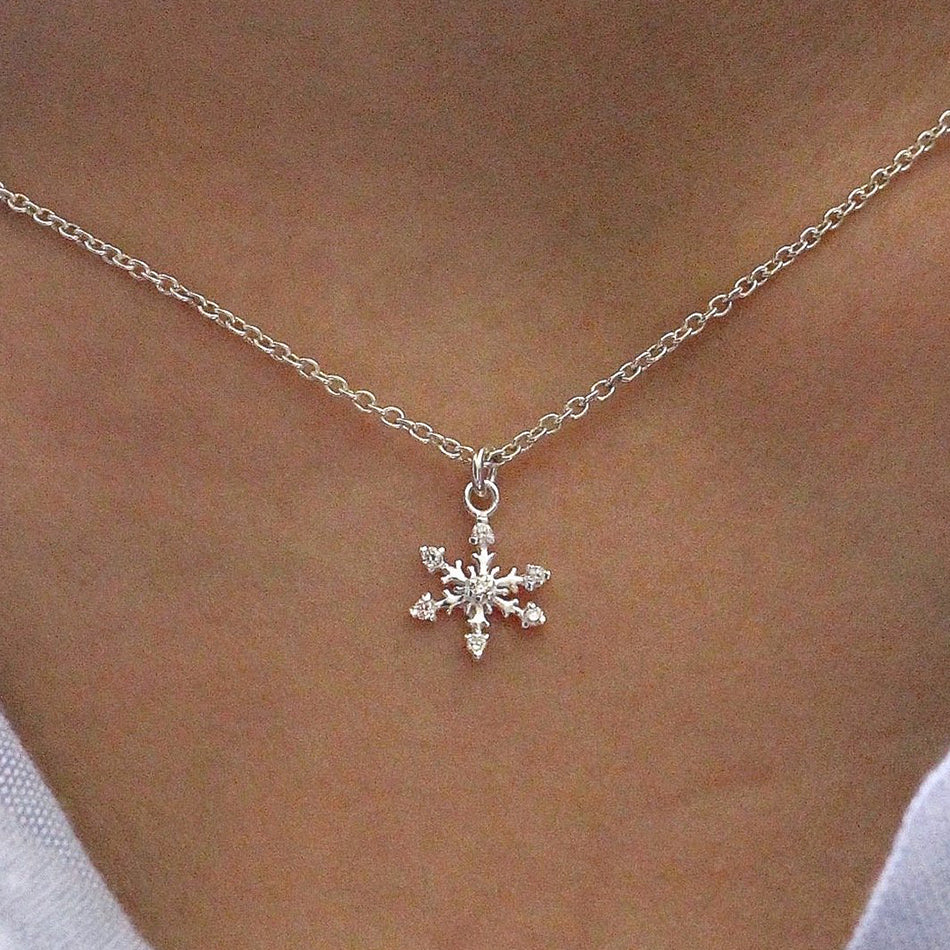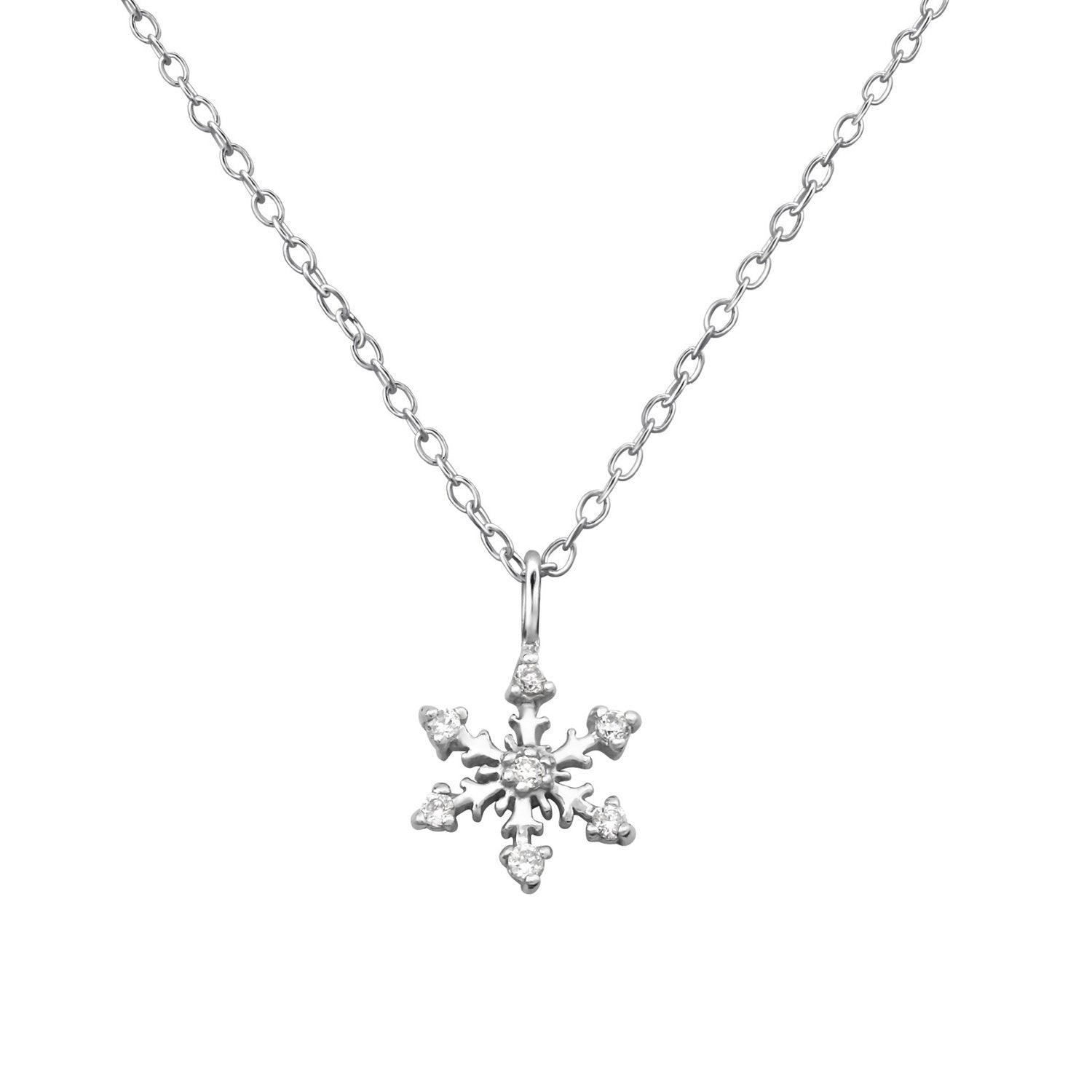 FX0390 925 Sterling Silver Sparkling Snowflake Necklace