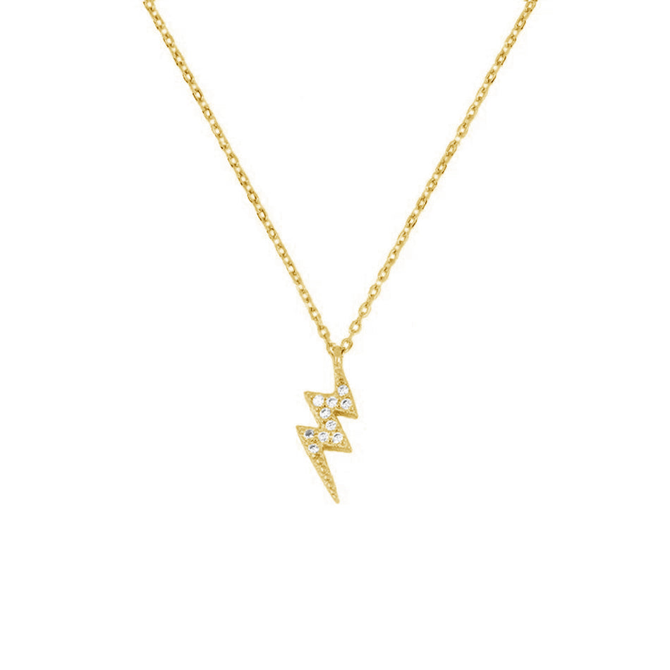 FX0395 925 Sterling Silver Zircon Lightning Pendant Necklace