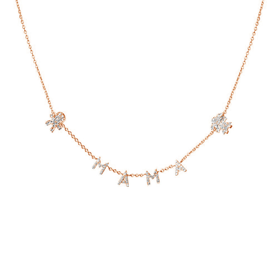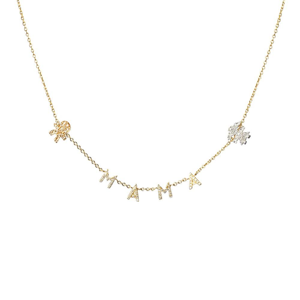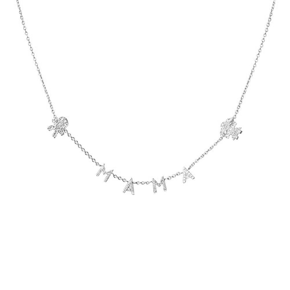 FX0475 925 Sterling Silver Zircon Mama Necklace with Kids Pendant